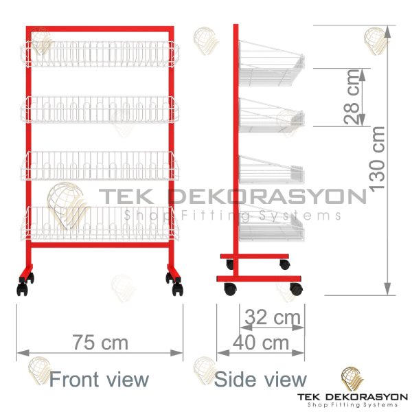 Our baskets, pools, and panels are specially designed for effective product display in stores. In addition to standard sizes, we also produce custom sizes and models. Made from steel and iron, these products provide durable solutions for store organization, offering ample storage space.