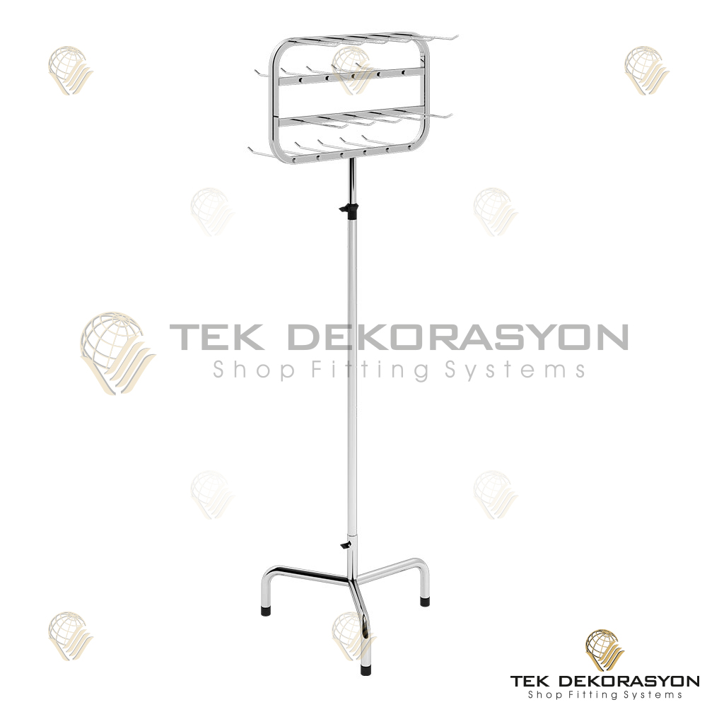 Designed for displaying accessories, bags, and belts, these products are made with an aesthetic touch using iron and steel materials. Their robust structure and refined designs support store organization. Our production process emphasizes attention to detail, guaranteeing functionality and durability.