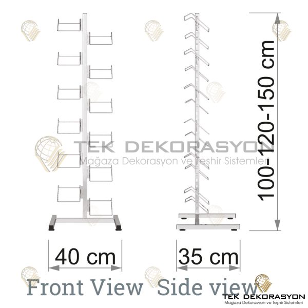 Aksesuarlar, çantalar ve kemerlerin sergilenmesi için tasarlanan bu ürünler, demir ve çelik malzemelerin estetik bir şekilde işlenmesiyle üretilir. Sağlam yapıları ve zarif tasarımlarıyla mağaza düzenini destekler. Üretim sürecimiz, detaylara verilen özenle işlevselliği ve dayanıklılığı garanti eder.